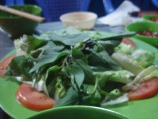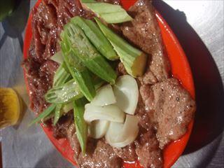 まず席に着くとメニューを持ってきてくれます。中国語で書かれているのでなんとなくわかります。指差しでヤギのおっぱい肉とロースをハーフで注文しました。お肉とオクラがセットで出てきて炭火で焼きます。お肉は臭みが無くやわらかくておいしいです。つけダレはお豆腐を裏ごししたようなソースです。香草も出てきます。お隣のベトナム人の食べ方を見ると焼いたお肉を香草で巻いて食べていました。他のテーブルでは焼き肉ではなく単品の中華料理を頼んでいるテーブルもありいろいろな種類が楽しめるお店のようです。