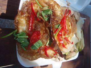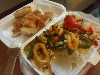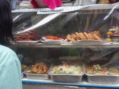まずフードコート入り口でお金を支払うと事前入金のチャージカードがもらえます。使い切れなかったときは最後にカードを入り口で渡すと残金を返してくれます。たくさんのお店がありとても悩みます。残念な事にアルコールを販売しているお店がありませんでした。テイクアウトは全てのお店で可能ですが容器代5Bがかかります。