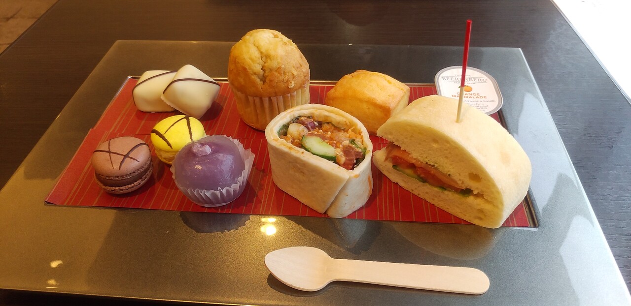 ラウンジの食事はあまり種類もなく、スペースが狭いからか、集中すると並ぶ列がはみでてました。夜と朝かぶるものもありましたし、朝のパンはいちはん多い時間にポップアップトースターしかないのでみな冷めていました。いろいろ種類があったのに、残念でした。