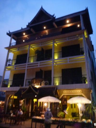 ルアンババーンは小さな町で、世界遺産認定の1995年以降は2階以上の建物を新たに作ることができないので、このホテルは4階建てで屋上から見られる景色は不思議な感じです。