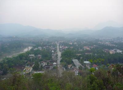 ぼわんとした緑と茶色の町ルアンババーンを見ることができ