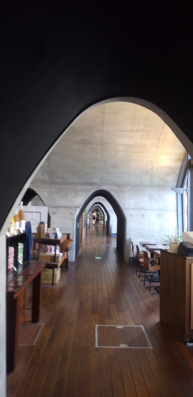 壁面緑化の入り口よりぐるっとまわってカフェへ。