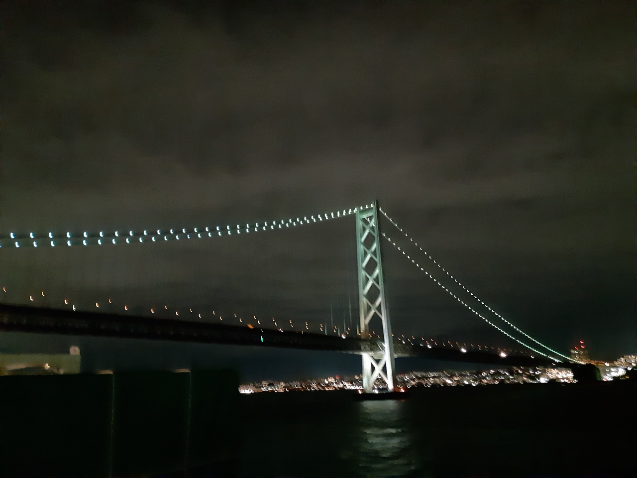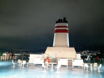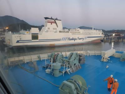 門司に行きたくて新幹線を調べていたら、フェリーもあることを知りました。阪九フェリーには、新門司港⇔神戸の航路と新門司港⇔大阪(泉大津)航路の2つがあり、今回は神戸からの便に乗船しました。新幹線とあまり変わらない料金で旅費+ホテル代が賄えて、寝てる間の移動なので楽で、門司では早朝から行動できて一石二鳥でした。乗った船は『せっつ』で2年前就航したばかりの新しく快適な船、レストランあり、小さいながらも浴場あり露天風呂ありでした。デラックス和洋室に泊まったのですが窓もあり時々瀬戸内海を眺められビジネスホテル以上でした。レストランの食事はメニューも沢山あり美味しかったです。13時間の船旅は揺れることもなく、明石海峡大橋の下をくぐるのを楽しみ、夜は熟睡出来ました。料金はデラックス和洋室で14960円がインターネット割引で2割引になり、思いがけず全国旅行支援の割引もあり7000円そこそこという格安になりました。到着地の福岡県のクーポン3000円が付き、船内でも使用可能でした。プラス船内だけで使用できる1000円クーポンまで頂き、かなりお得でした。