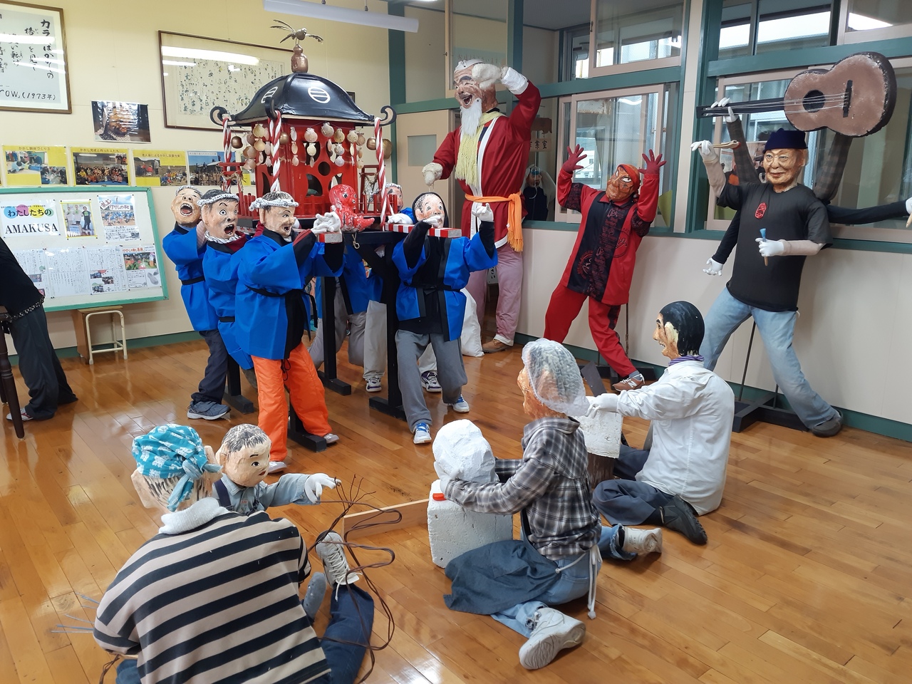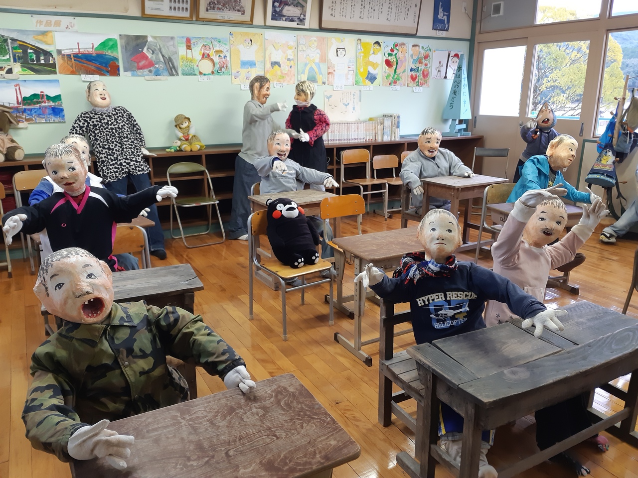 本渡からコレジョ館に向かう途中にあった道の駅、廃校になった学校を利用していました。案山子がリアルで、とても楽しい道の駅です。農産物やお土産もあり、食事はお蕎麦屋さんが運営しているようで、美味しそうなお蕎麦があり、そばパフェや学校給食メニューもありました。火曜日は天草ちゃんぽんとラーメン類だけになるそうです。