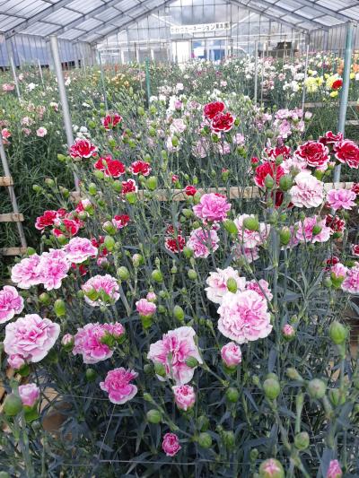 河津桜見物の際に立ち寄りました。3棟のハウスがあり、1棟は普段出回っているカーネーション、2棟にはまだ販売されてない研究中の特別なカーネーションが栽培されています。1棟には花見台が設置されて、高い所からカーネーションが見れるようになっていました。品種の違いは良くわかりませんでしたが、興味のある方には貴重なカーネーション見本市です。入園料は300円、河津桜の時期に見れるのがいいです。場所は河津桜の大きな駐車場の近くでした。