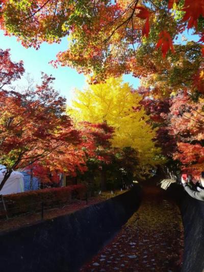 11/10頃に訪れましたが、日向は紅葉が良かったのですが、回廊のなかは日陰なのでまだまだ青葉でした。回廊じたいはそれほど長くないので簡単に見ることができます。回廊に近い駐車場は高いですが、遠くには無料駐車場があるようでした。河口湖沿いの紅葉や他の紅葉も良かったので、遠くに停めて歩くのも良いかと思いました。