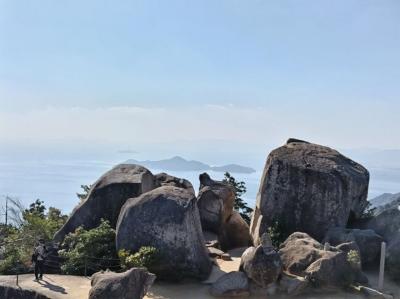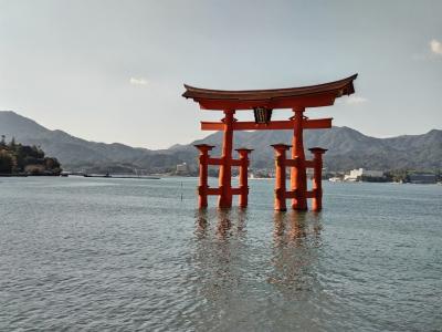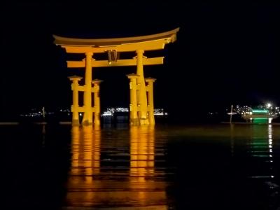 11月の紅葉の時期だったので、観光客の多さに驚きました。人の波、また波、波。宮島に行くなら宿泊したいと考えて半年前に予約しましたが、人気なので高い宿しか残っていなかったです。宮島はこの秋からは宮島訪問税100円が徴収されることになり、往路のフェリー料金に加算されていました。泊まって本当に良かったのは、満潮、干潮で違った風景が見れたし、弥山も登れたし、特に夜は大鳥居のライトアップが幻想的で美しく、昼間の喧騒が嘘のような静かな宮島でした。宿泊できなくても、フェリーが夜遅くまで運航しているので、夜はお勧めします。ただしお店はやっていないかも知れませんが。