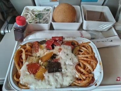成田とフランスの往復に、チューリッヒ経由で乗りました。エコノミーですが、ウェルカムクッキーと飲み物サービスがあって驚きました。食事はまぁまぁ美味しかったです、往路は夜中にアイスとサンドウィッチが全員に配られました。復路では配られませんがギャレーにホットドッグのようなのが置かれてあったので、自由に持って来ても良かったのかも。特に印象に残っていたのが、復路のCAさんで、飲み物や食事を渡す時に、「エンジョイ!」と、優しく言ってくれたことです。「楽しんで~」って気持ちがとても伝わって、長時間の飛行機の苦痛が和らいだ気分になりました。チューリッヒからパリまでの区間では、ミニチョコレートと水をくれました。