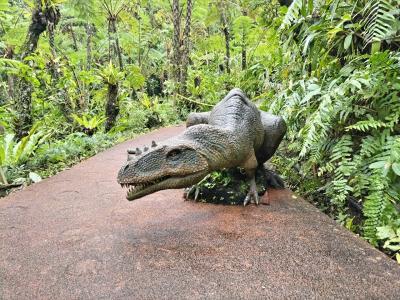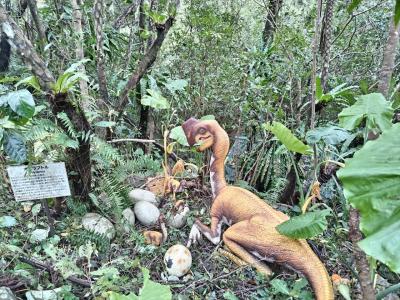 7才と4才の孫を連れて見て来ましたが、予想以上にシニアの私達も楽しめました。お菓子御殿名護店の隣りにあり、入口から階段を降りて行くので、ベビーカーの方は少し大変かと思います。中には多くの恐竜がいて、鳴き声まで響いていましたね。亜熱帯の森というくらい珍しい植物もあるようです。ここのショップには、数多くの珍しいフュギュアの恐竜が売られていました。