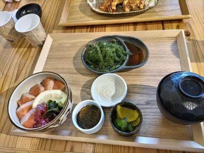 美ら海水族館のそばのハナサキマルシェの中の飲食店です。向かい側には、スターバックスがあり、駐車場も店の前に数台と、坂を上ったホテルの駐車場が利用できそうでした。ランチで利用しましたが、とてもリーズナブルで美味しかったです。イス席と座敷席があります、行った時は韓国や中国の方も多かったです。タッチパネルで注文する形式でPayPayなども使えるようです。