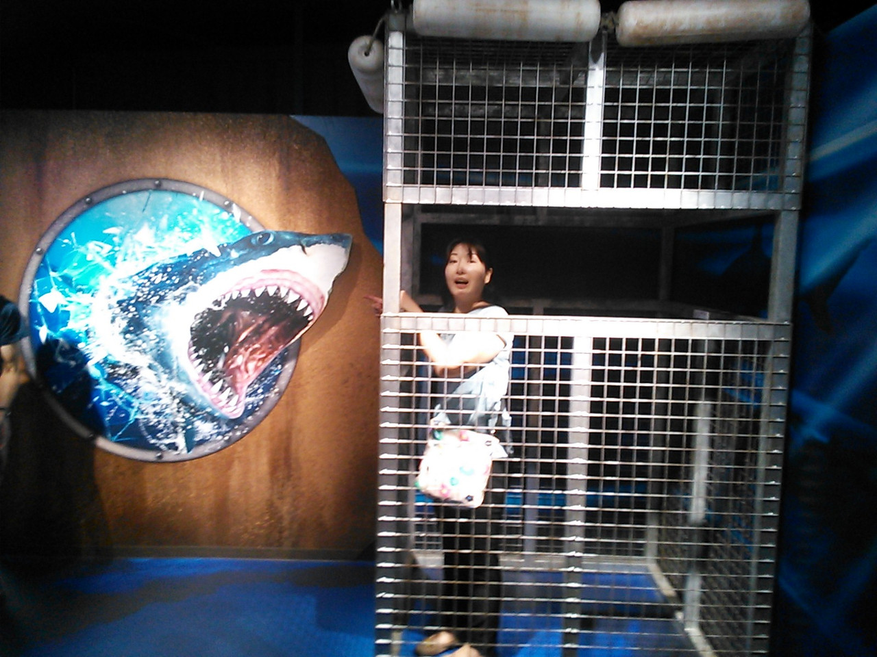 シルバーウィークのこの日は8時半オープンだったと思いますが、8時半に着いてオープンしていて、私達はホテルで事前にチケット持っていたのですが、チケット売り場全然すいてました。なーんだ混まないのか?と思い入ると、最初は結構、中は混んでました。がドンドン進むとすいていてカフェで朝食。子供達はなぜか、二人ともパンケーキ。じゃ私は甘くないのが食べたい。と、ジンベイザメセットでジンベイザメのパンとソフトクリームのやつ。子供達が甘くないのも欲しがるかとカレーパンを頼みました。が、ジンベイザメパンなーんと甘いパンでビックリ!!だってソフトクリームとセットになってるから、ジンベイザメパンが甘いとは予想外てした。その後カフェが混んできたので、カレーパン頼んでおいて良かった〜と思いました。