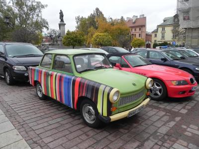 かって一世風靡した東ドイツ製の乗用車「トラバント」。カラフルに塗装され...