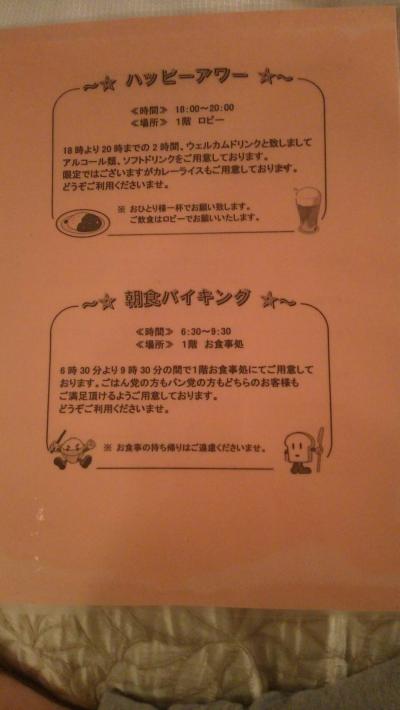 ビジネスホテルを利用しました。