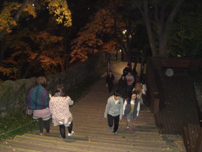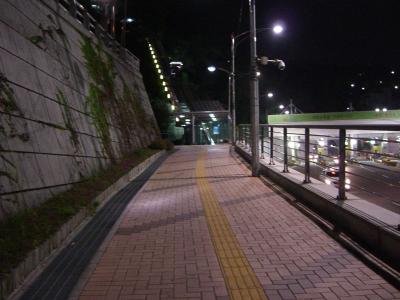 南山ケーブルカー乗り場まで、この急こう配の階段をおります。もみじが紅葉...