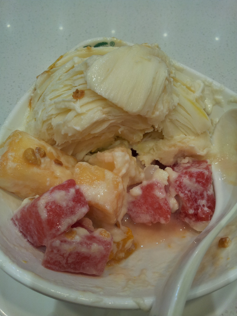 この日(9/30)の日替わり定食はお寿司と焼きうどん・サラダ・茶わん蒸し・味噌汁・ご飯・メロン これで76元でした。割と量が多かったので、焼きうどんは残しちゃいましたが。
