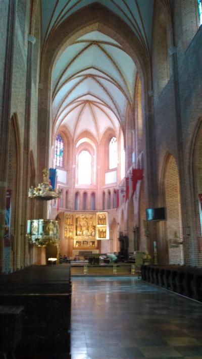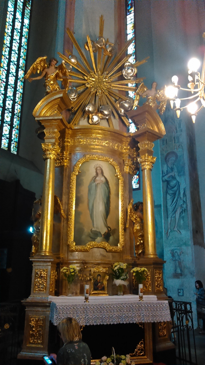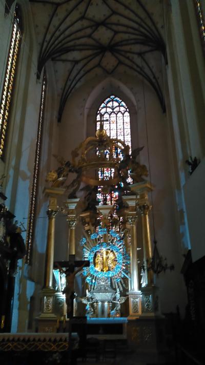 ツアーで訪問しました。市庁舎より大きく荘厳な感じがします。14世紀後半に創建された古い建物で、全体的に造りは典型的なゴシック様式の建築です。ステンドグラスも綺麗ですし、金色の主祭壇も豪華な感じがします。