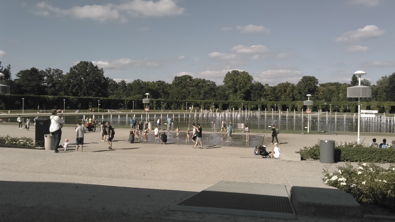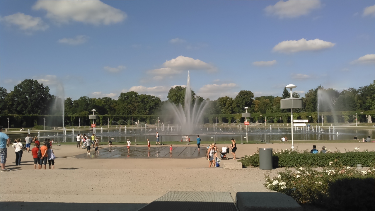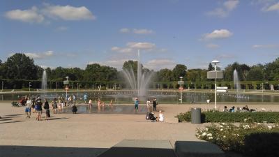 ツアーで訪問しました。暑い日だったので、日陰に座って休みながら眺めていました。毎正時ごとに、音楽に合わせて、噴水が高くなったり、低くなったり、斜めに出たり、まっすぐ出たりしています。大変幅が広い池なので、見ごたえがあり、涼しく感じました。