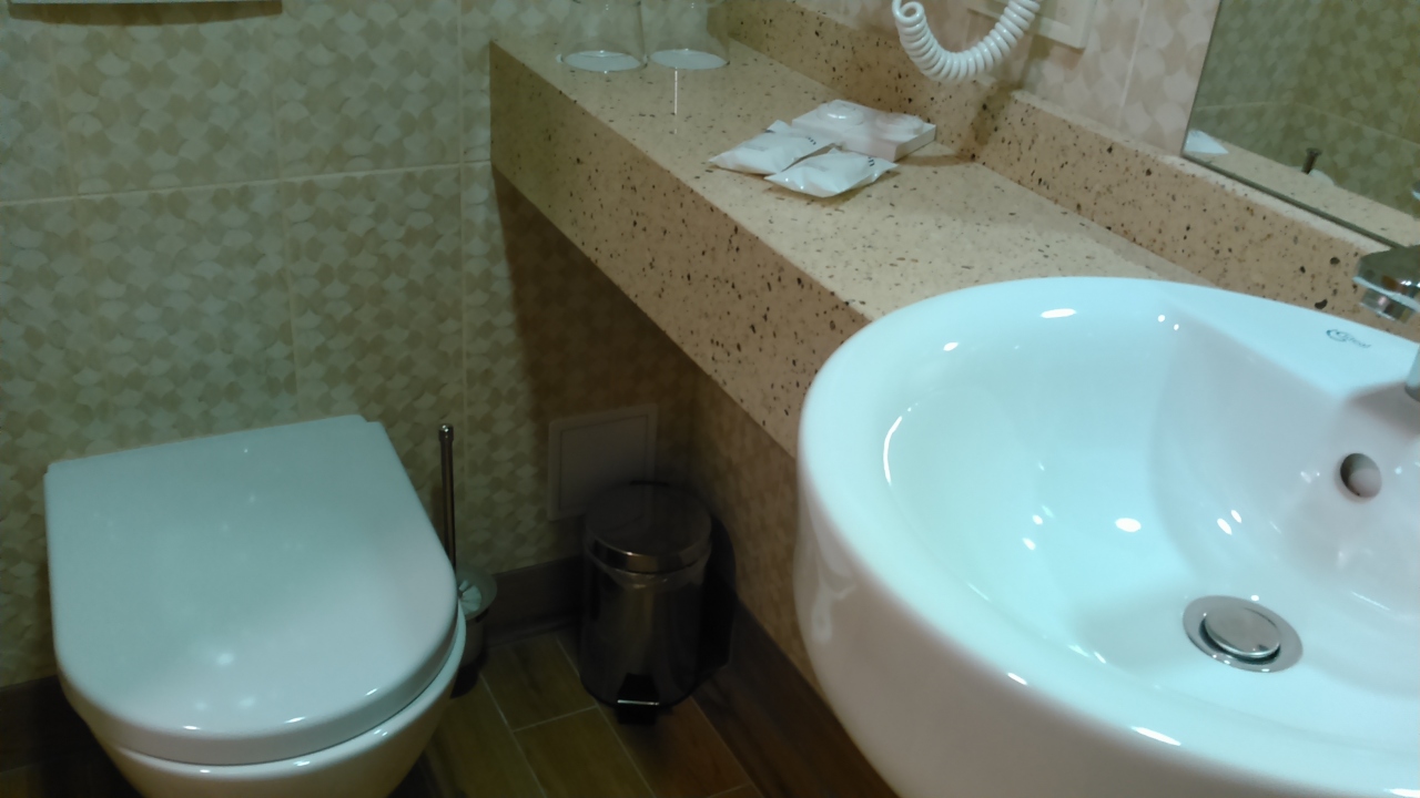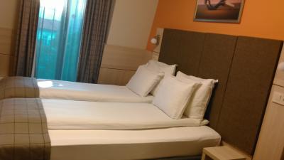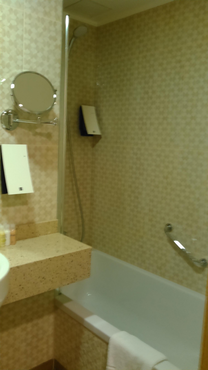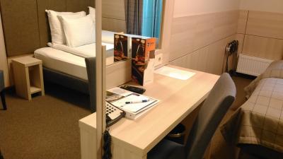 ツアー初日にフィンランドからフェリーでタリンに渡り、1泊しました。港から車で5分程度と近いです。歩いても多分15分程度かと思われます。バスタブはなく、シャワーのみ、電気ポットや無料のお茶セットなどもありません。シャワー排水は時間をかければ大丈夫ですが、今一つでした。部屋の内鍵があるのに、閉められず、大変不安な一夜を過ごしました。