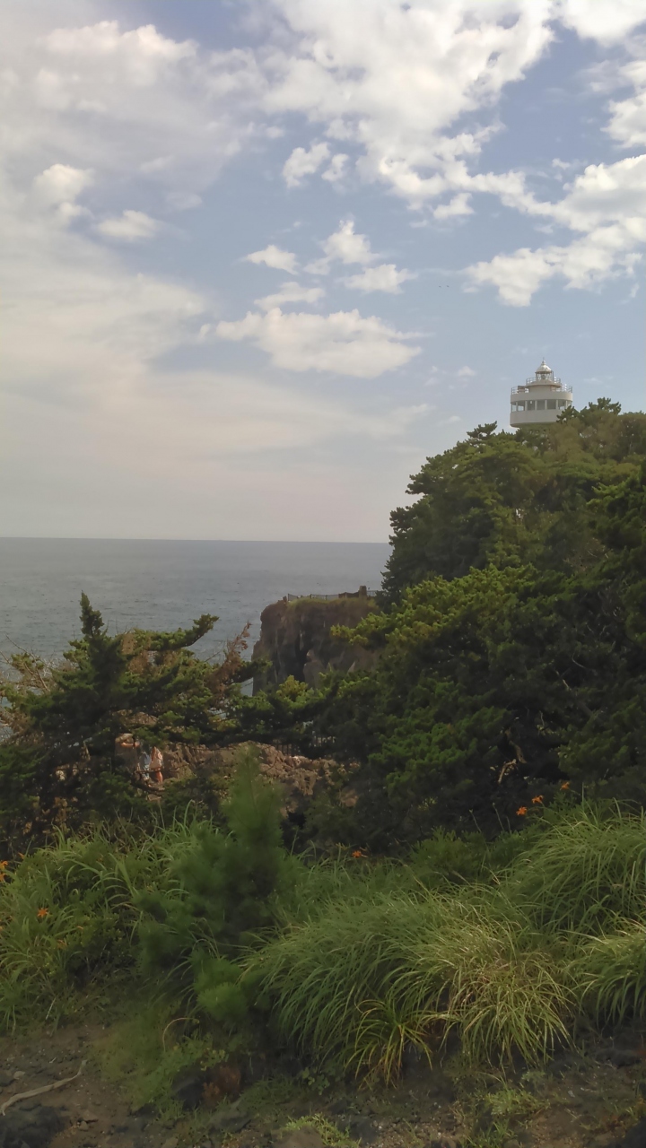 城ヶ崎海岸駅からタクシーで5分1100円です。つり橋の近くにある地上25m海面からの高さ40m以上の白亜の灯台です。晴れた日には伊豆諸島が臨めるようですが、行った日は曇りで、あいにく見えませんでした。