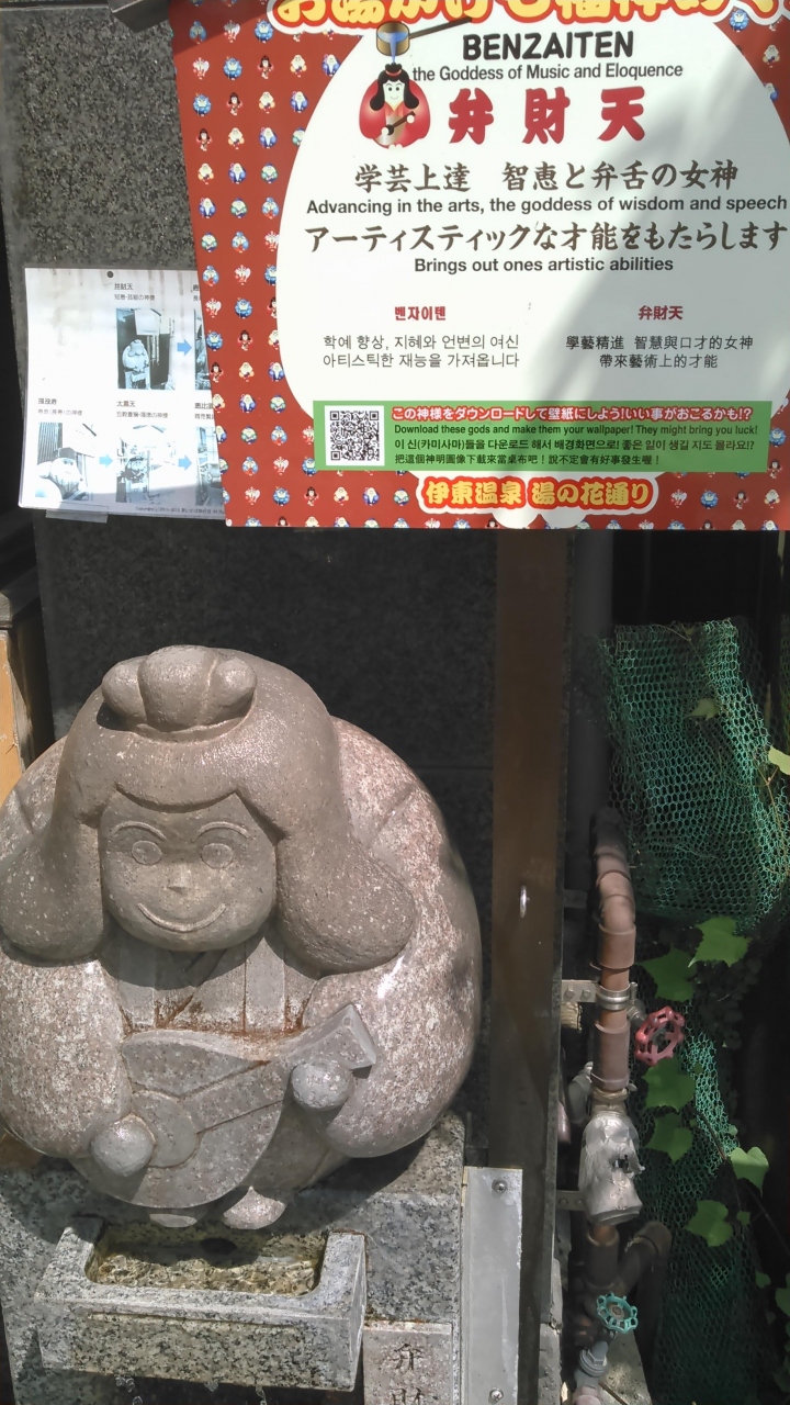 伊東でのランチの後、伊東駅までぶらぶら歩いていると偶然見つけました。七福神ですから、本来なら7人見つけてお湯をかけるのでしょうが、時間の制約もあり、見つけた神様だけにしました。仙石原の美術館巡りをする予定でしたので、にわか「アーティスティック」なお願いをしました。
