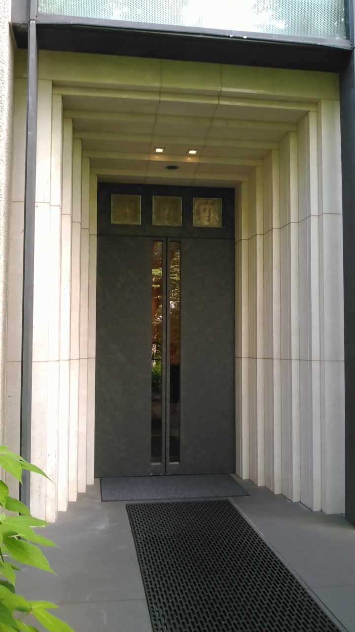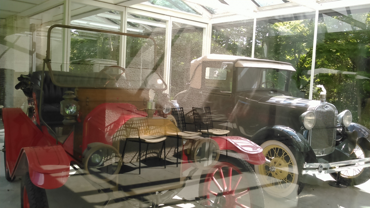 箱根ガラスの森美術館から観光施設巡りバスで訪問しました。受付で、帰りの箱根湯本行きのバス停を尋ねたら、親切に地図と時刻表を見せながら教えてくれました。手前の木の重々しいドアを開けたら???雑貨を売っているパッサージュでした。森の径を一番奥まで歩いて行くと、荘厳なドアがあり、そこが美術館入口でした。ガラスや香水の瓶、門扉など、小さなものは一つ一つがガラスケースの中に展示されていました。