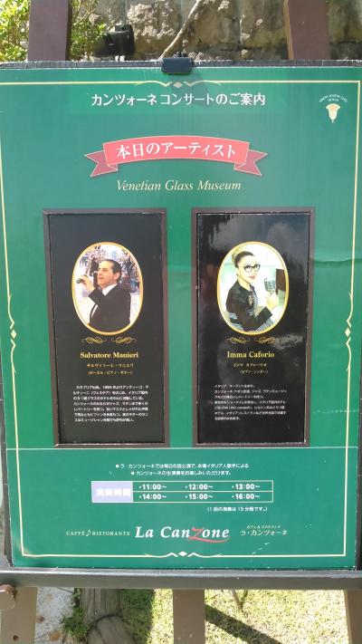 箱根観光施設巡りバスで、ポーラ美術館から移動しました。火曜日お昼に行ったのですが、コンサートが2つ。ランチの時間に、レストランでカンツォーネ、その後ヴェネチアン・ガラス美術館でクリスタルガラスのアンサンブル。ガラス製品の展示も素晴らしいですが、これらのコンサートも聞けて目と耳と心とお腹が満足しました。