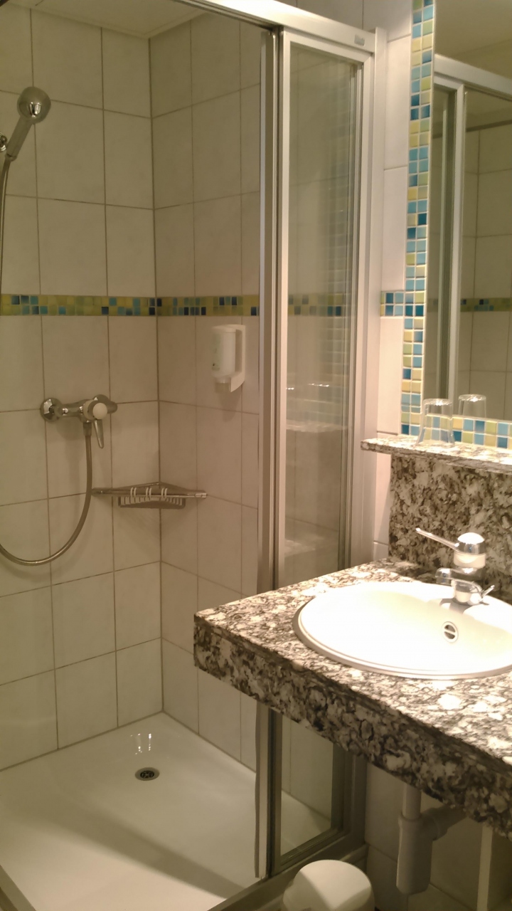 ツアーで2泊しました。駅の構内を通り抜け50mほどの便利な所にあります。駅前にはコープというスーパーもあり、8時から18時30分まで営業しており、買い物にも便利です。バスタブはなくシャワーだけ、タオルセットも1組だけ、電気ポットもありません。wifiは客室入口そばなら使えます。NHKワールドニュースは映りますが、なぜか途中で終わってしまい、その後は点きませんでした。