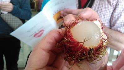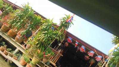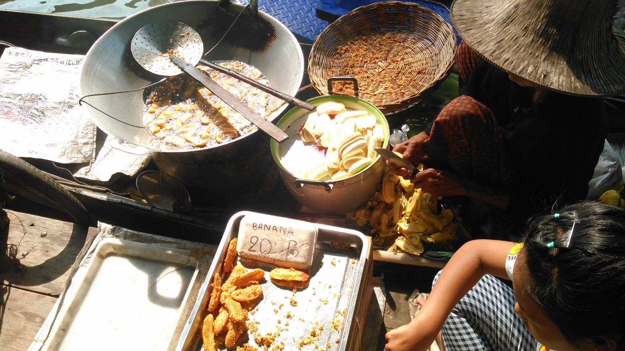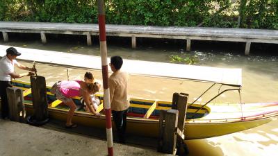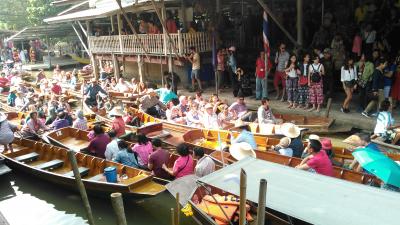 ツアーで訪問しました。ボート1隻に8人乗り、水路のような川を、ぐるぐるまわり、周囲の木々や、水上の民家やお店などを見て、上陸しました。お店が船。バナナを揚げて売ったり、マンゴスチンやランブータンを売ったりしていました。水上に浮かぶお店も結構大きく、水上の船も大混雑していました。