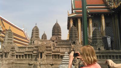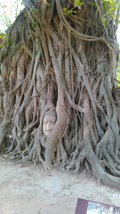 ツアーで訪問しました。長い年月をかけて、菩提樹の木の根元に仏様の顔が浮かんでいます。低い所にあるので、記念撮影の際には、自分の頭が仏様より低くなるよう、しゃがんで撮ります。仏塔にはトウモロコシ型のクメール様式と、尖塔のようなスリランカ様式が混在しています。