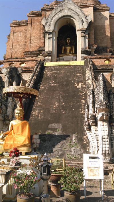 ツアーで訪問しました。大きな仏塔の名前があります。バンコクのワットプラケオにあるエメラルド仏が一時納められていたそうです。チェンマイではワット・プラ・シンと並び