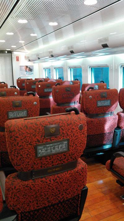 小倉は九州の入り口、100万都市北九州市で最も栄えているところです。新幹線も止まり、山陽本線、鹿児島本線、日豊本線などが走っています。特に面白いのは、博多発小倉経由、大分行き、または逆の、特急ソニックやシーガイアの場合、必ずお客は小倉で立たなければなりません。なぜかというと、列車の進行方向が変わるので、立って座席の向きを変えなければならないからです。慣れない人はシートの回転のさせ方が分からず、近くの座席の人が手伝ってあげています。