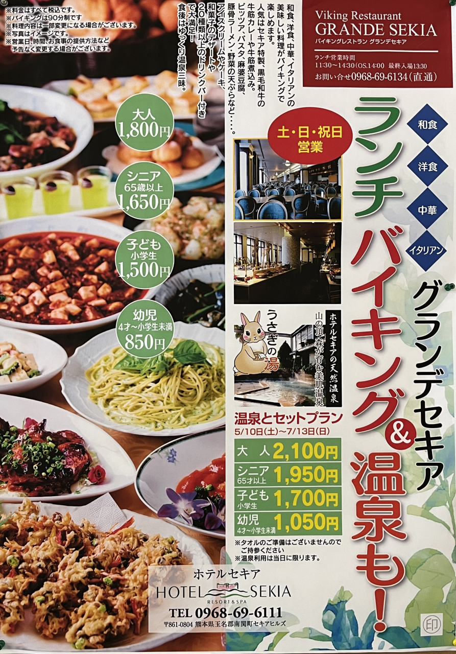 日帰りツアーのランチで訪問しました。90分の時間が与えられました。ビュッフェが1800円。シニアは1650円と書いてありました。お風呂付だとそれぞれ2100円、1950円。タオルは付いていません。和食、洋食、中華、イタリアン。どれも美味しいですが、一番のお勧めは黒毛和牛の牛筋カレー。バスドライバーさんがこれを大皿に取っているのを見て、きっと美味しいに違いないと思って取ったら、その通りでした。しっかりたっぷり、60分ほどかけてあれもこれも何度もお代わりしました。料金が2倍の、小倉の有名某ホテルよりも、コスパよく、美味しかったので、機会があればまた行きたいです。昔はアウトレットがあり賑やかでしたが、今はそれはありません。