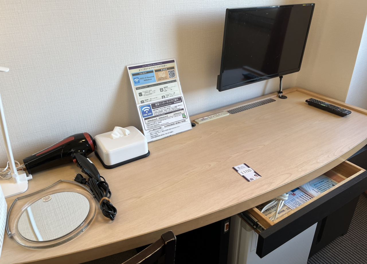 小倉での定宿になりつつあり、毎月のように3泊お世話になっています。小倉駅から徒歩13分と少し歩きます。1階に大浴場と中浴場があり、男女日替わりで朝、夕使えます。先月も「来月もお世話になるので、今回と同じ物をお部屋にご用意ください」と、フロントの親切なYさんに依頼。チェックイン時には別のスタッフが「お部屋にご用意いたしました」とのことでした。静かな部屋、ポーラのシャンプ―類、拡大鏡、電気スタンド、そば殻枕など、全てご用意頂いてありました。完璧!来月も楽しみです。