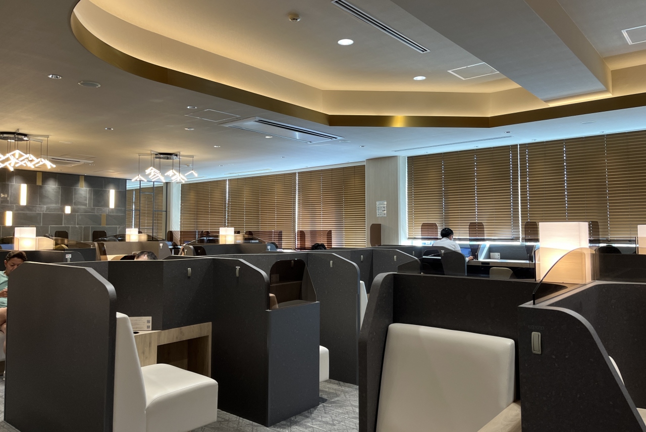 鹿児島空港のゴールドカード以上のカードと、搭乗券があれば無料で利用できる、居心地がいいラウンジです。椅子は一人ずつ分かれていて、他の客の視線はあまり感じられません。飲み物は鹿児島の焼酎、マンゴー・トマトジュースなど充実しています。