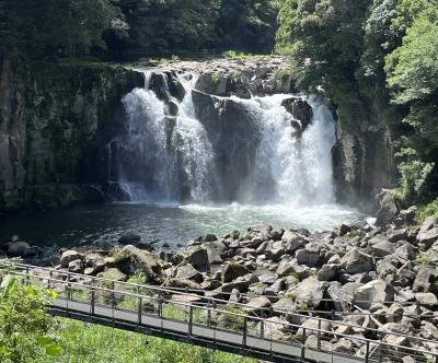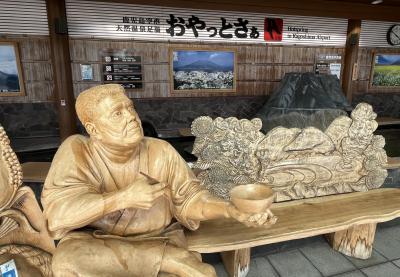 鹿児島空港出口横に、この足湯があります。ちょっと手を入れてみると熱めだったので、お湯に浸かることはしませんでした。ここの前のベンチに、ご飯茶碗を持ったせごどんの像が座っており、一緒に写真を撮ることもできます。300円でタオルも買えるので、お時間に余裕のある方いかがですか?