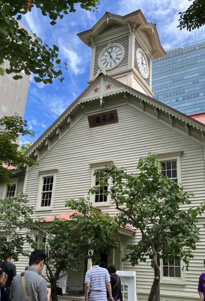 札幌観光のガイドブックには必ず載っている観光名所です。多くの観光客が表で写真を撮るために、順番待ちをしています。1878年に建設された歴史的建造物で、国の重要文化財に指定されています。正式名称は「旧札幌農学校演武場」と言い、北海道大学の前身である札幌農学校の施設として初代教頭であるクラーク博士の構想に基づき建設されたそうです。中ではクラーク博士と一緒に写真を撮ることもできます。思っていたより小さいかもしれませんが、白くて綺麗です。