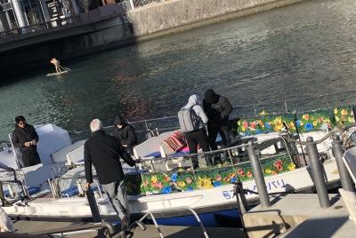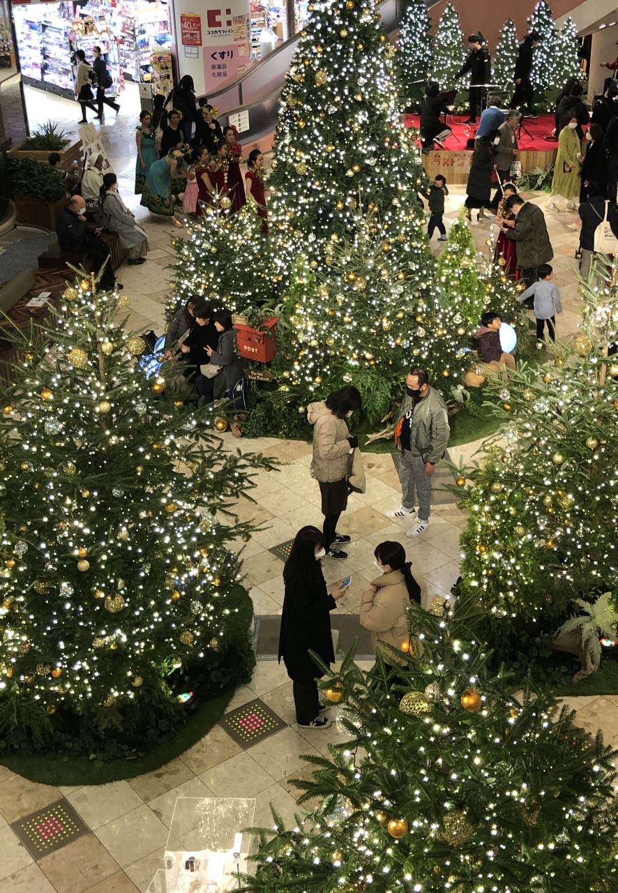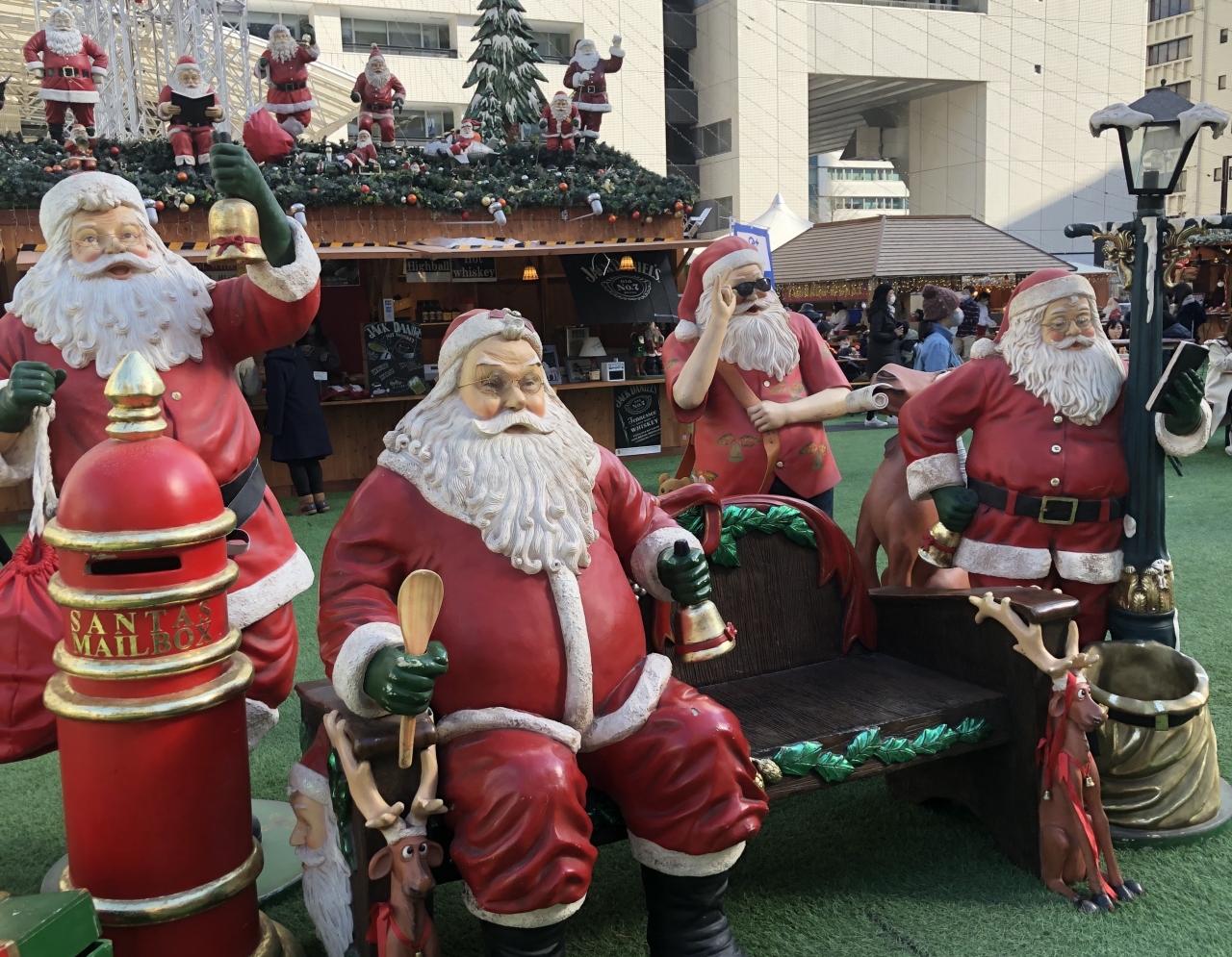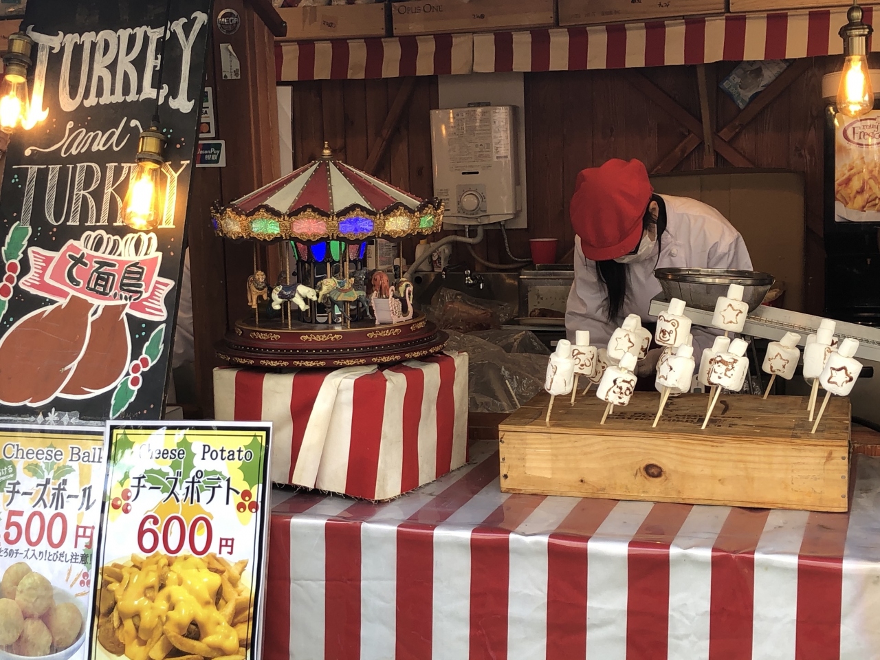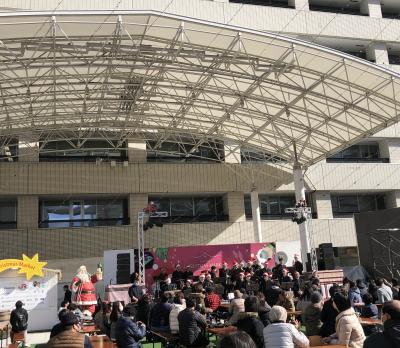 寒いけれど良く晴れている日曜日に訪問しました。クリスマスマーケットをやっています。ホットワインや、マシュマロ、パエリヤなどの食べ物を売っているお店、ガラス細工や雑貨などを売っているお店がぐるりと並び、ステージでは、中学高校生の吹奏楽の演奏をしていました。