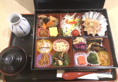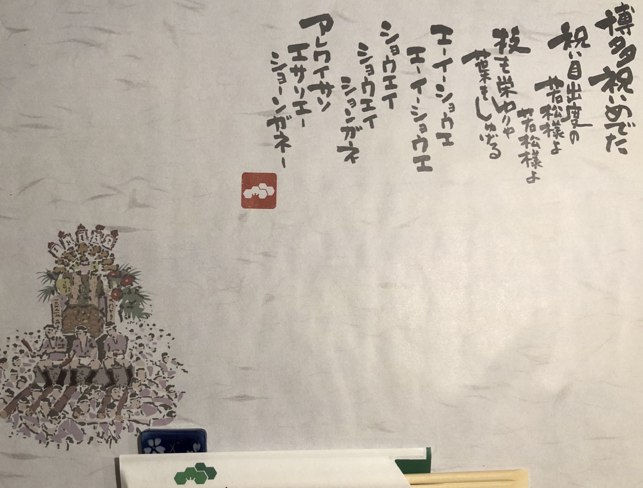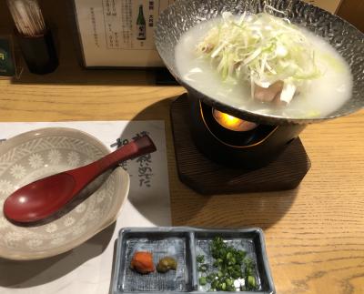 JALパックに1夕食1朝食が付いていたので利用しました。ホテル2階にあります。入口で鍵のかかる下駄箱に靴を入れ、掘りごたつ式のカウンターに案内されました。寿司会席で、刺身は新鮮で美味しかったです。が、甘いこってりとした、刺身醤油でも九州醤油でもなく残念。水炊きは鶏肉には火が通っているとのこと。スープは美味しいのですが、一人用鍋の固形燃料の火力が弱いのか、猫舌の私でも、ぬるいと思うような熱さにしかならず残念。量的には十分すぎるほどでした。朝食は松花堂弁当。量は十分で美味しかったです。