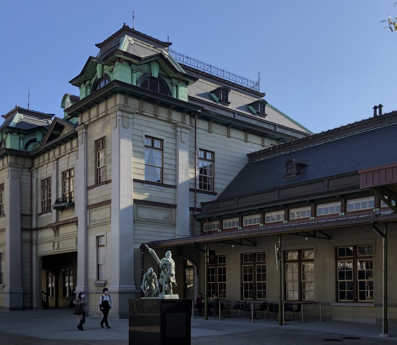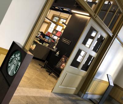 門司港駅の改札を出て直ぐ左、門司港駅構内にあります。屋外の広場にもテラス席があります。ネオルネッサンス様式の西洋風建築の駅舎と、雰囲気が良く合った、天井が高い、レトロ感が漂う建物です。旧三等待合室がモチーフです。