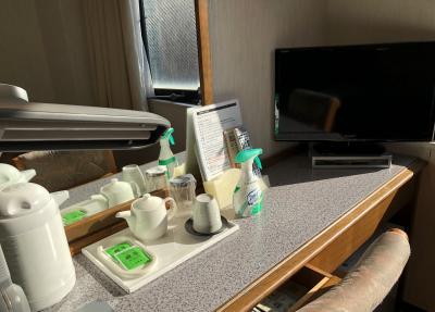 GOTO利用で1泊2食付きで1泊しました。門司港駅から徒歩3分、跳ね橋が見える部屋でした。備品類は整っています。バスタブはつるつる滑り、立ちあがるのが大変、シャンプーは髪がきしみます。夕食は4階のイタリアン。厨房へのオーダーがお客に丸聞こえ。味は普通。食後の紅茶は、ティーパックを5分煮立たせたのかと思うお味。朝食は2階にて。シャンパンあり。指さして、皿ごとシェフに取ってもらいます。クロワッサンは5個100円の物かと思う味。みそ汁の中のあさり7個の内口が開いていて、食べられたのは3個のみ。あれこれと指さして皿を取りましたが、完食できたのは、ノンオイルドレッシングのサラダ、明太、漬物のみでした。12月の予約はキャンセルしました。