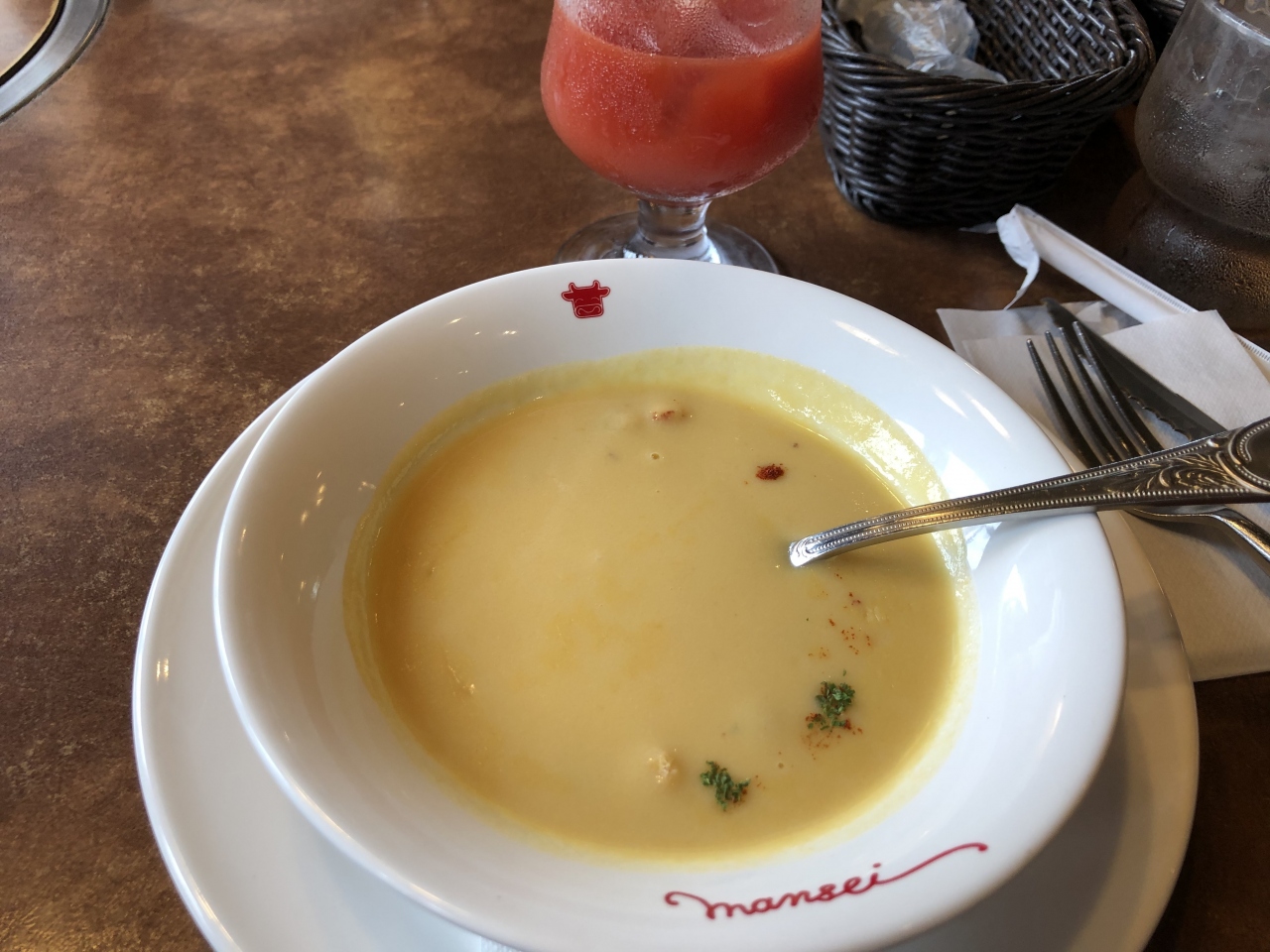 祝敬老の日と言うことで、翌日、大人4人と子供1人で、ランチをいただきました。正午過ぎに着き、駐車場は1台だけ空いていました。ハンバーグ、カレー、ステーキとそれぞれ注文し、シェアしました。スープとハンバーグが特に美味しかったです。