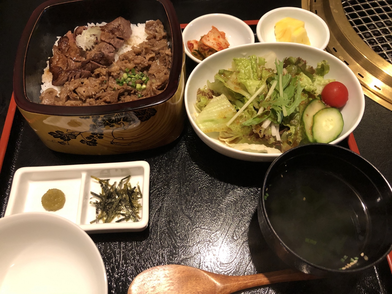 コロナ禍なので、個室で換気扇があるこちらで、友達とお肉ランチをしました。小倉駅から徒歩5分、コレットの駐車場前の公園の向かいにあるビルの2階です。サラダ、飲み物、お肉重、ご飯と吸いものが付いています。地域クーポンも使えました。美味しかったです。