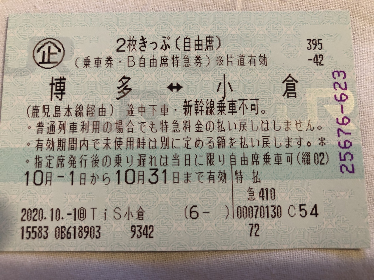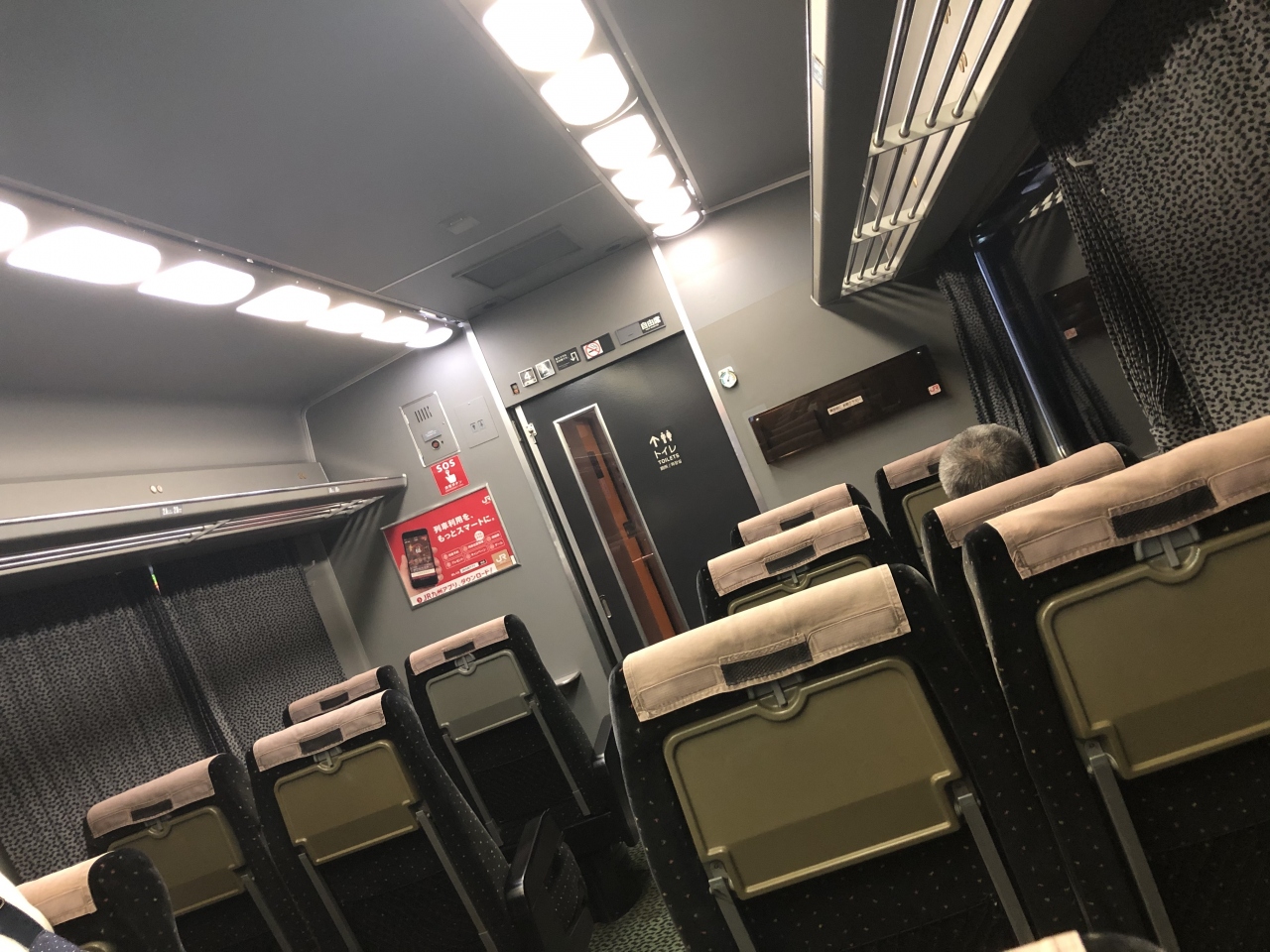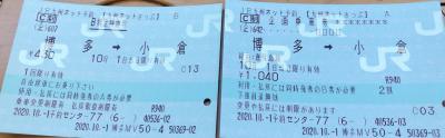 博多から小倉へ移動するために利用しました。事前にネットで予約すると、1470円。窓口で買うと1830円なので、お得です。車両の色は今回は青。約40分で着きます。ヘッドレストが、ミッキーの耳の形でかわいいです。乗客は少し増えてきています。