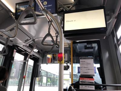 博多駅から天神まで、連結バスに乗車しました。普通のバスは幾つかの停留所で停車しますが、これは快速のように2つだけと速くて便利です。でも、値段は同じ100円。スイカなどがあれば、後ろからでも下車できます。