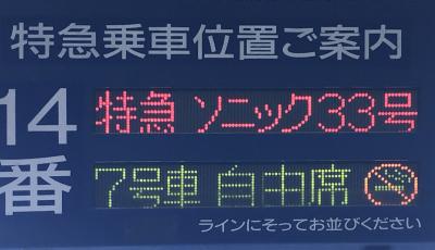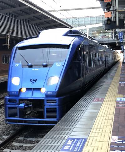ソニックに乗ろうと思って行ったら、早く着きすぎて、1本早い「かがやき」に乗れました。小倉博多間を走る特急です。1両が中央部で二つに分かれています。豪華さはソニックの方が上。速さも。逆に、停車駅が多いので、こちらの方が使い勝手が良い方もいるでしょう。値段は同じです。