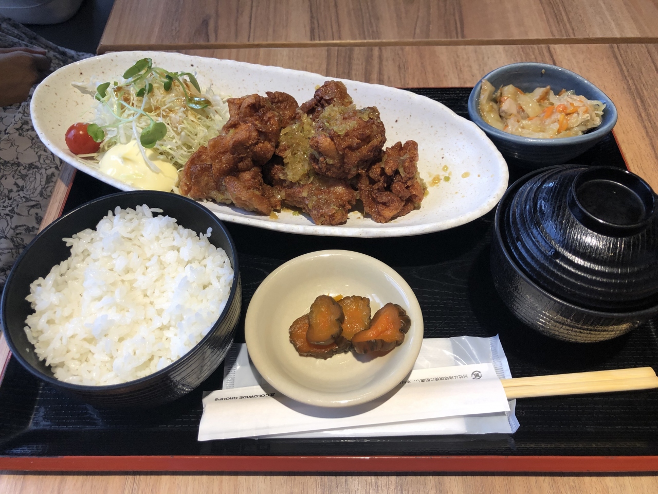 JR津田沼駅から徒歩2分、ビルの7階にあります。津田沼駅前で、手軽にランチが食べられ、時節柄、空いているお店ということで、娘と二人で訪問しました。娘は油淋鶏定食880円、私は焼き魚定食930円+ドリンクバー100円。普通に美味しかったです。