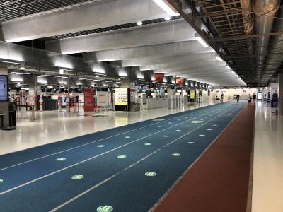 コロナのご時世で、海外便は運行されていません。国内線も、減便・運休が多く、リムジンバスも大幅減便。ターミナル内は相変わらず閑散としています。今まで通路に沿ってあった、本屋やコンビニなどは、通路より一本奥に入った所にお引越ししました。