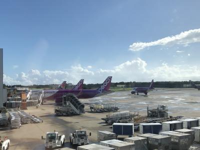 福岡空港国内線のカードラウンジです。このご時世で、アルコールでシュッシュ、検温して入室。缶ビール1本かソフトドリンクが選べます。サーバーの飲み物、新聞、雑誌はなし。個包装のお菓子いくつかが入った袋をくれます。ちょっと一息入れるのに便利です。