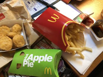 小倉駅歩道橋下と、大変便利な場所にあります。年に1度くらいマックのポテトが食べたくなり、ケチャップを付けてもらい、ナゲット、アップルパイをテイクアウト。駅上のホテルの部屋で頂きました。世界中変わらぬおいしさです。