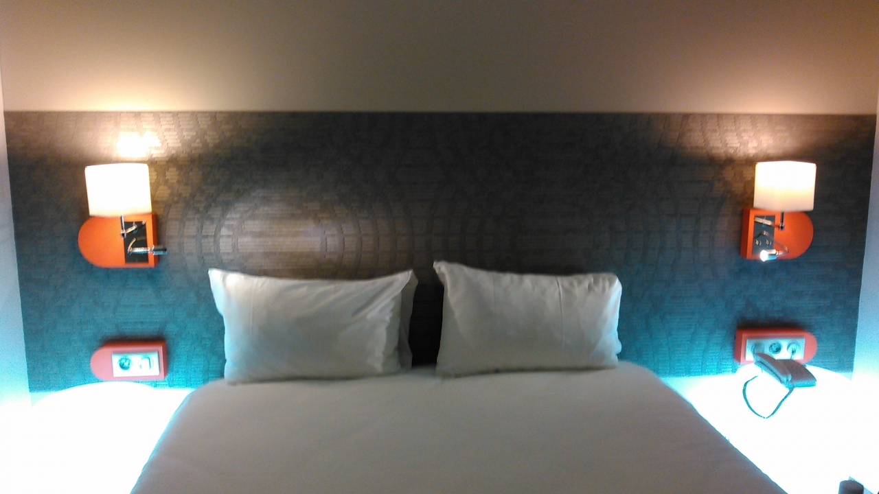 ツアーで1泊しました。普通のビジネスホテルです。ベッドはダブル。バスタブがついていました。冷蔵庫はありませんでした。カルフールまでは徒歩5分程度。朝食は簡単な物でしたが、オレンジジュースが美味しかったです。